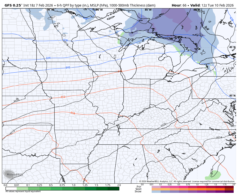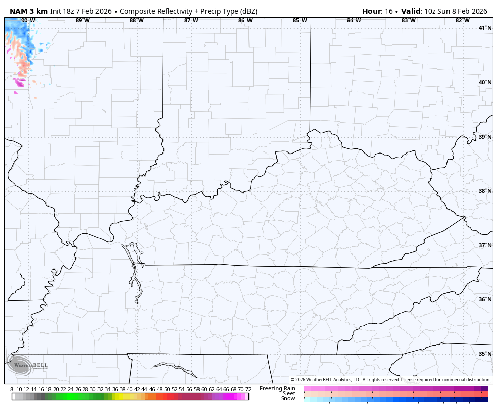 We do have one more round of light snow zipping in from northwest to southeast early Sunday. This mainly impacts parts of northern and eastern Kentucky where some local 1″ amounts will be possible.