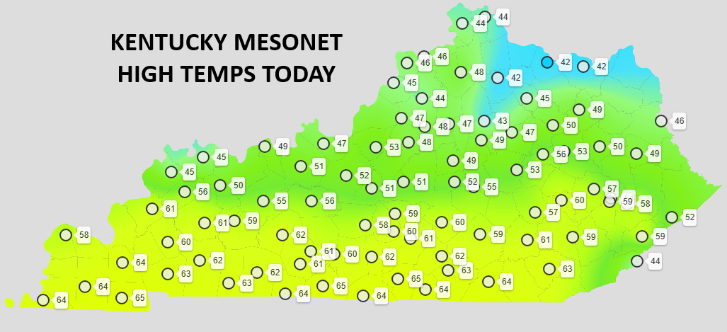 Temps on Tuesday hit 70-75 in the south and southwest with temps in the north reaching 45-50 for most. This is ahead of a cold front that spits out a line of showers rolling through here during the evening…