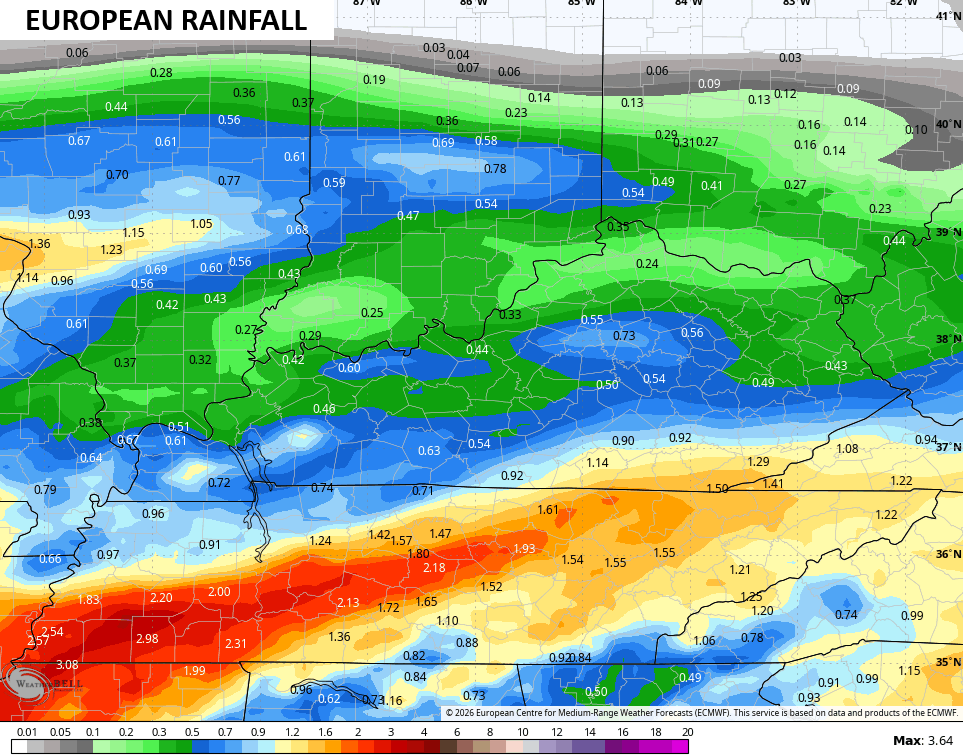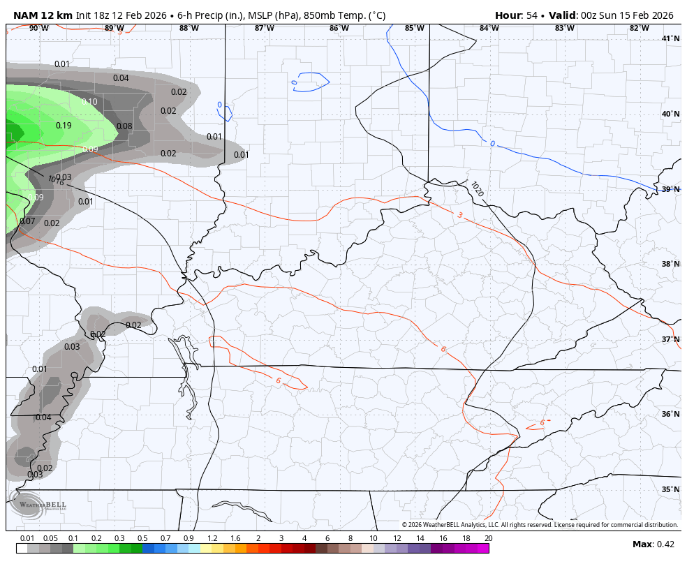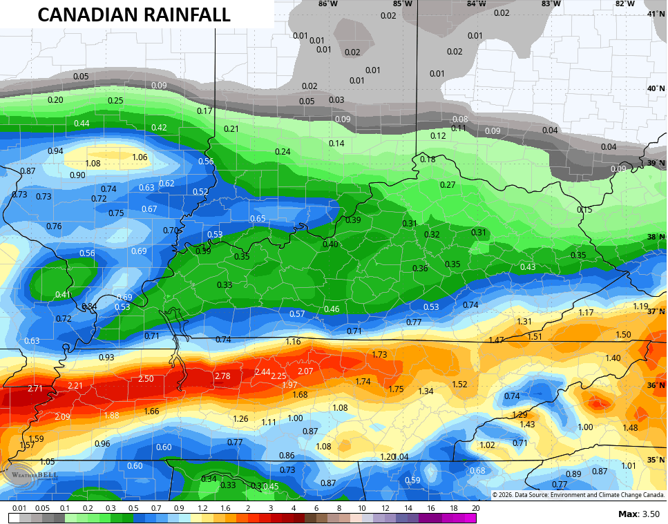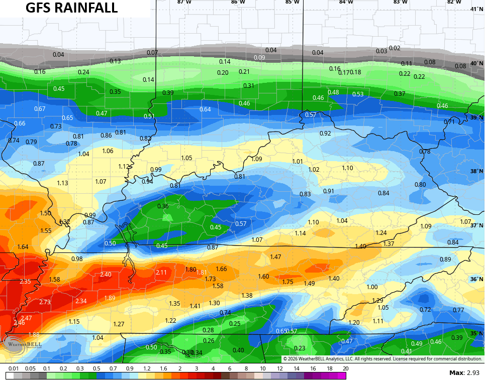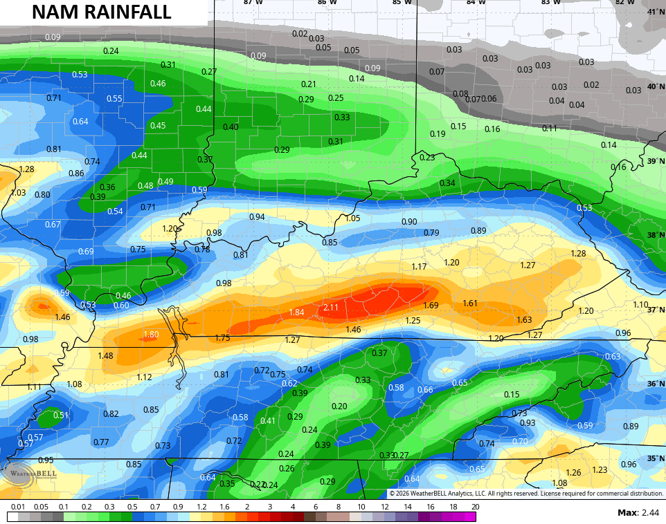 Some locally heavy rains are possible, especially across the south. The NAM is most amped up with 1″” totals…