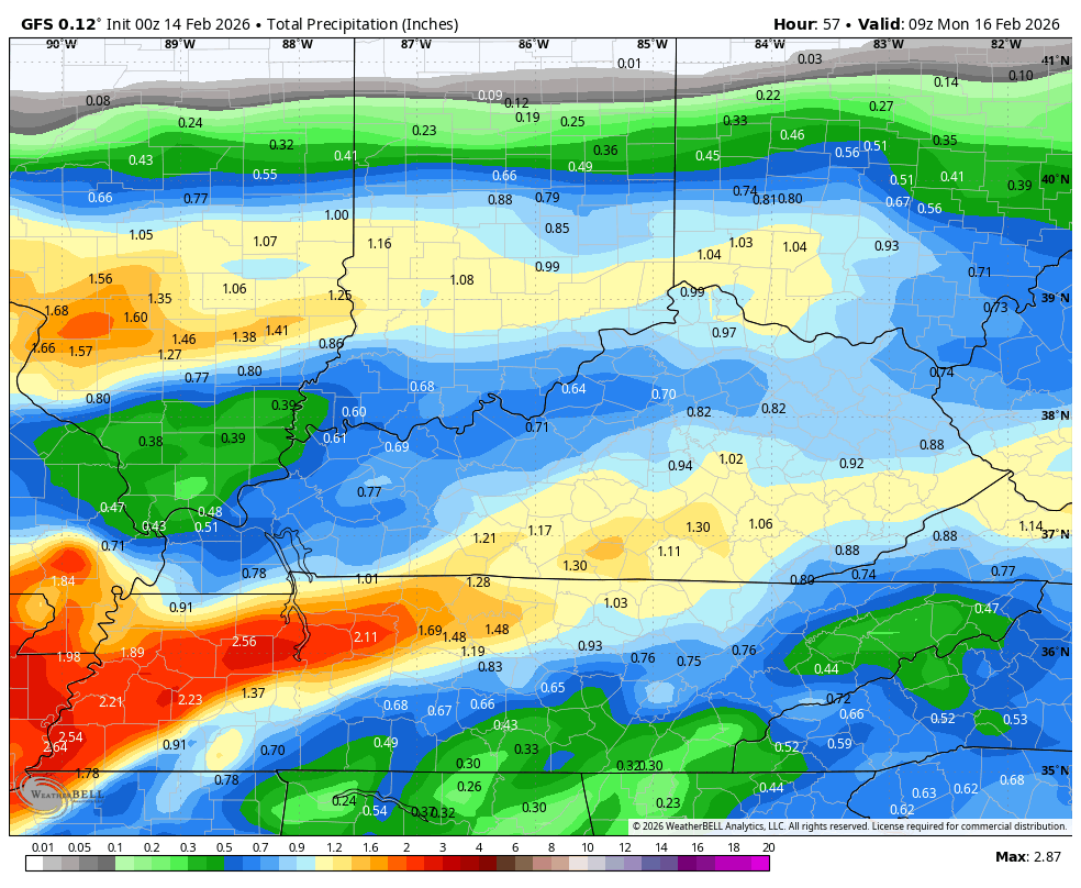 Let’s begin with today and roll forward. Highs are in the 50s with clouds increasing as low pressure moves across the Tennessee Valley and into the Carolinas by Sunday. Rain moves into western Kentucky today then overspreads the rest of the state this evening and overnight. From there, rounds of rain continue through Sunday before tapering from west to east during the afternoon and evening.