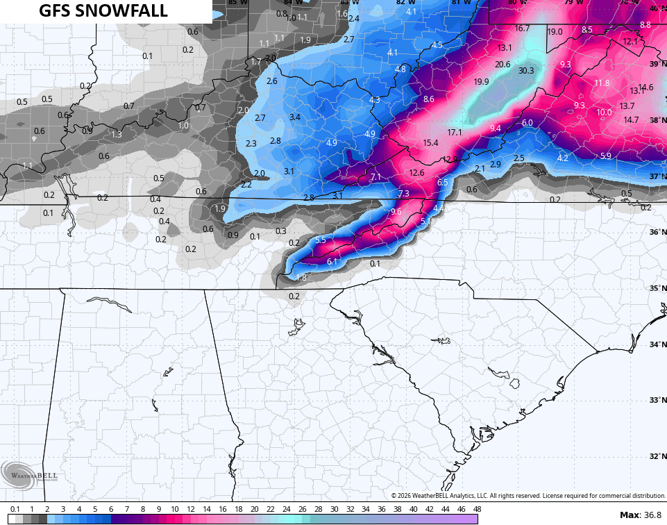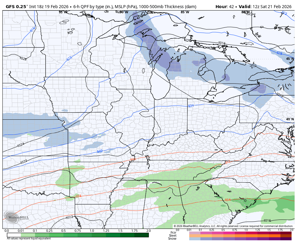Calm skies show up for Friday with partly sunny skies and gusty winds. This is ahead of winter surging back in here over the weekend and into early next week. The GFS is trying to show a full-blown snowfall across central and eastern Kentucky from that low pressure to our southeast. Then, snow showers and flurries kick in on a strong northwest wind flow…