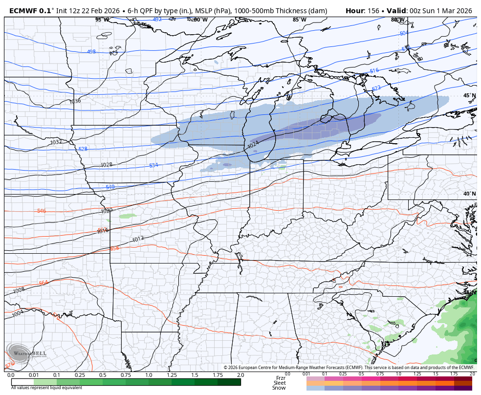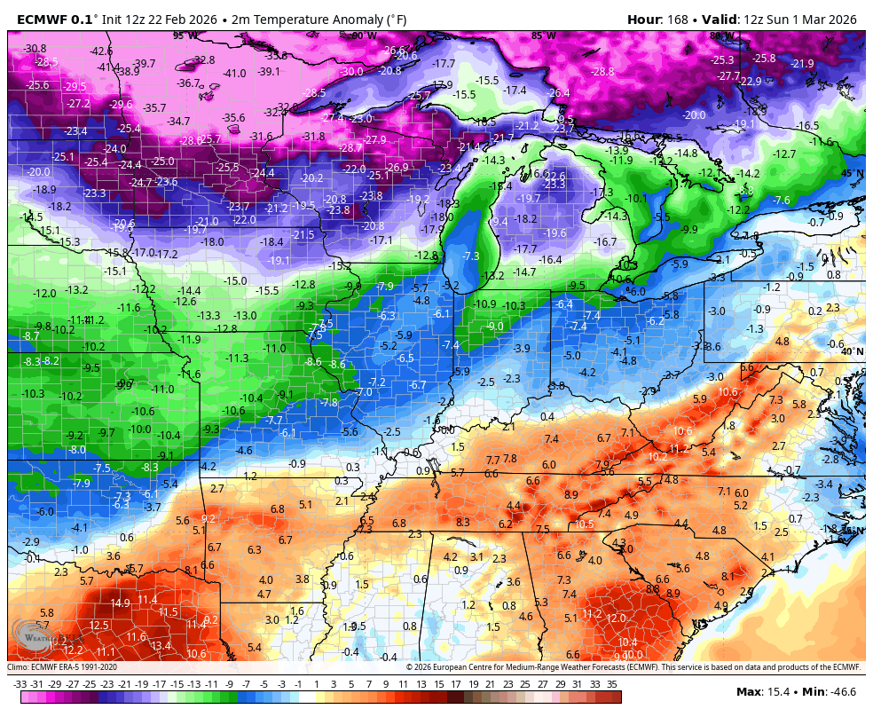 What happens behind this as we end February and begin March is a little murky right now. The Ensembles and GFS have a warm setup, but the Canadian and Euro Models have more of a winter look.