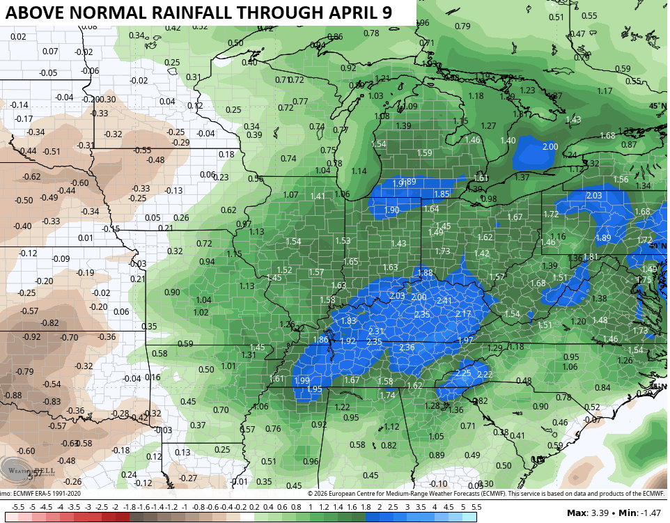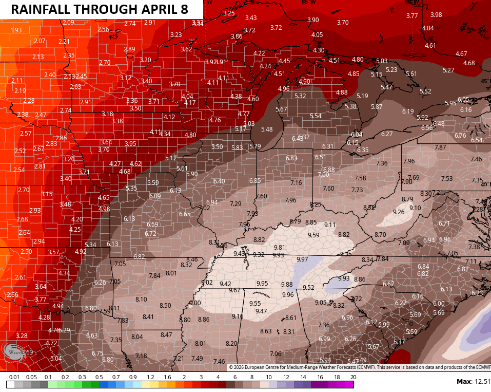 That sets our region up for the potential for early season spring floods as the Bullseye of the heaviest rains are on top of Kentucky and Tennessee…