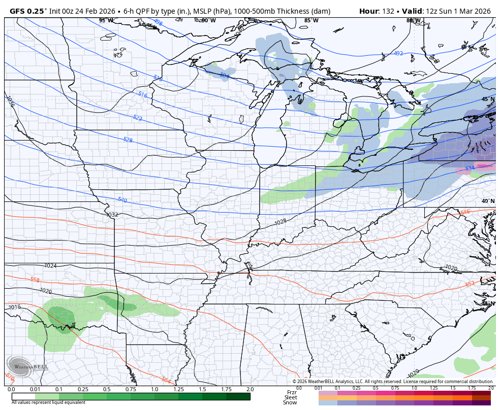 Another front drops in with falling temps on Sunday. That sets the stage for an active opening to March with several systems rolling through here next week…