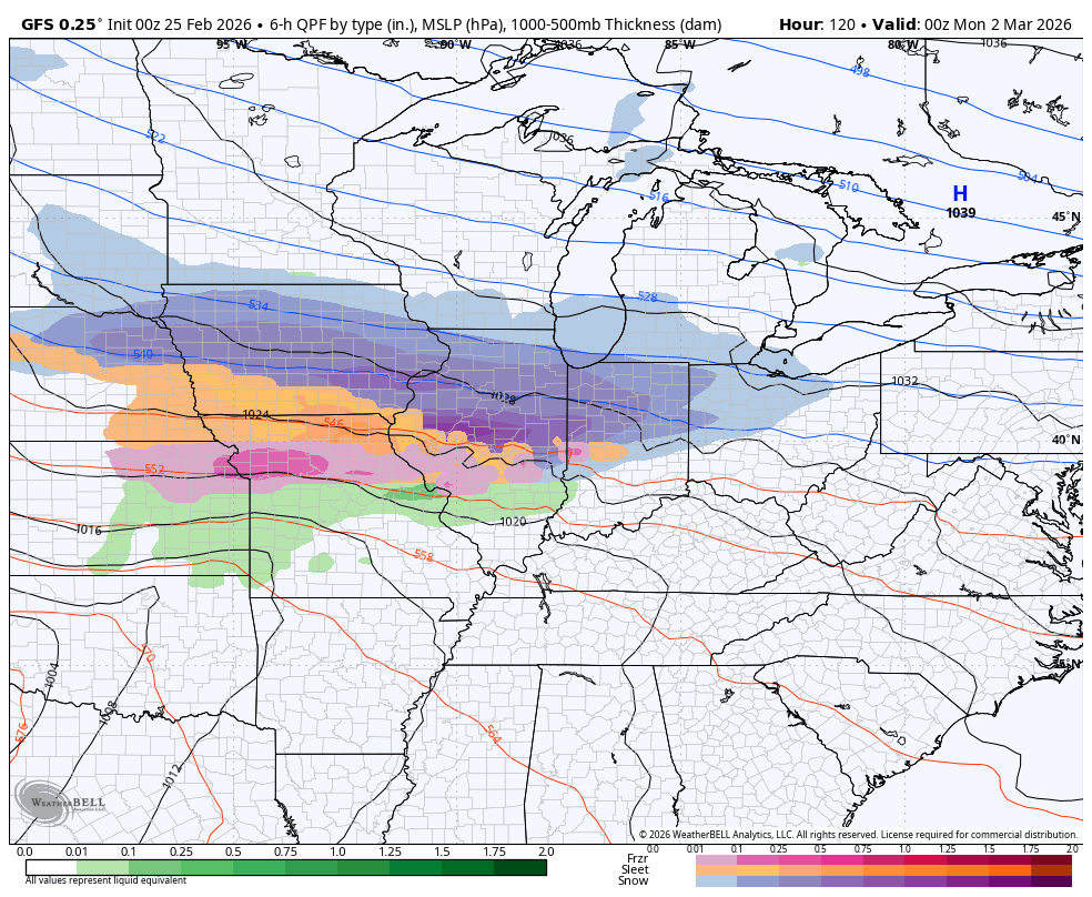 This has the chance to put down some slushy accumulations across the northern half of the state. For areas getting in on some accumulations, it goes away very quickly during the afternoon and evening as skies clear and temps jump.
