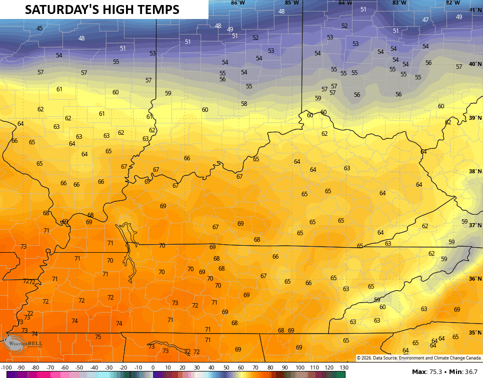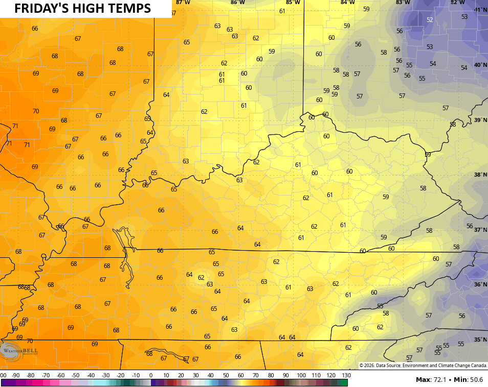 Friday looks awesome with temps around 60 in eastern Kentucky with upper 60s west…