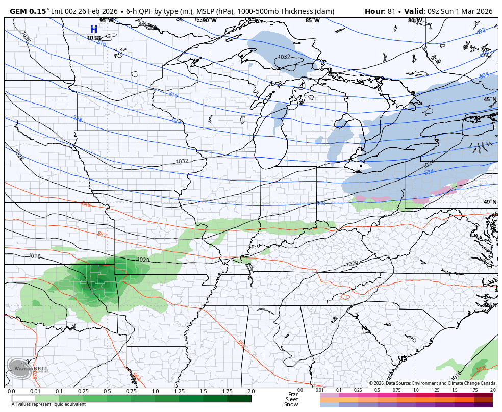 This will have a band of winter weather along and north of the track Sunday night and early Monday. Can some of this sneak into Kentucky? Yes, but details are murky at best from this range.