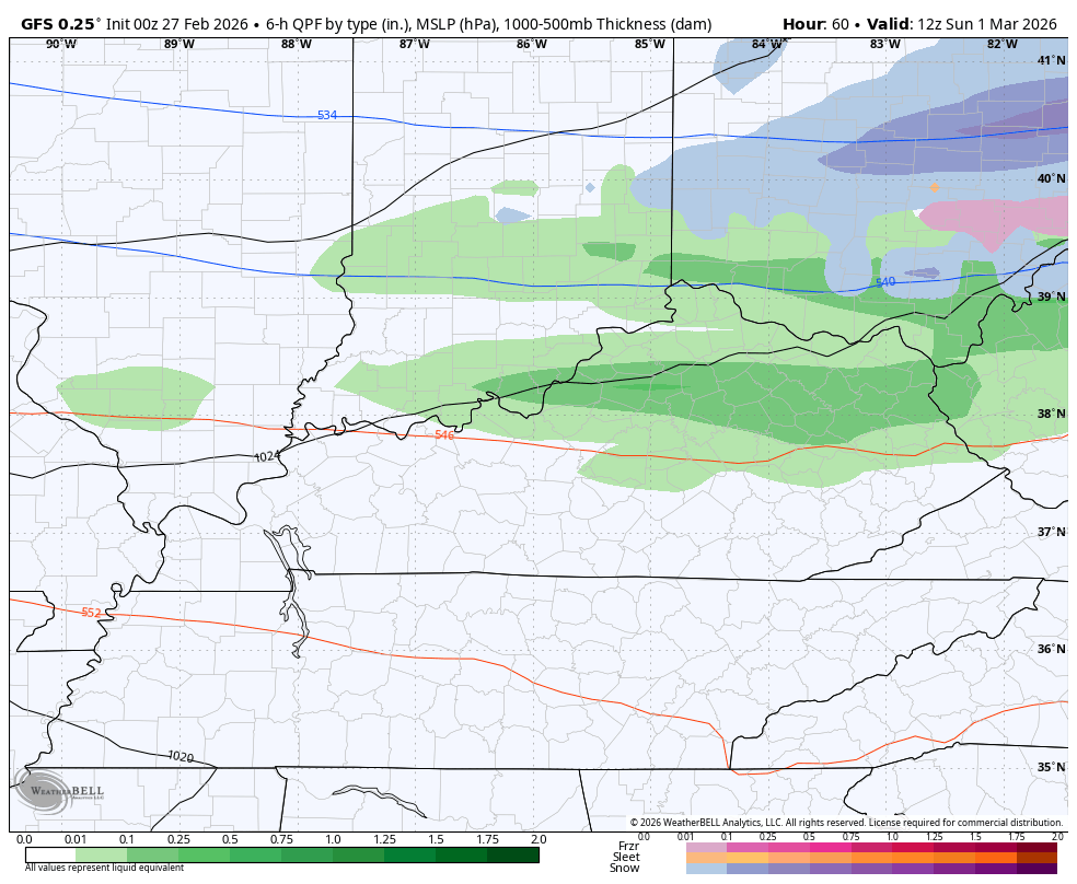 Good Friday, everyone. Much milder winds are kicking in for the final two days of February. Once into early March, a messy system brings rain and snow to the region Sunday night and Monday before an active spring pattern takes control.