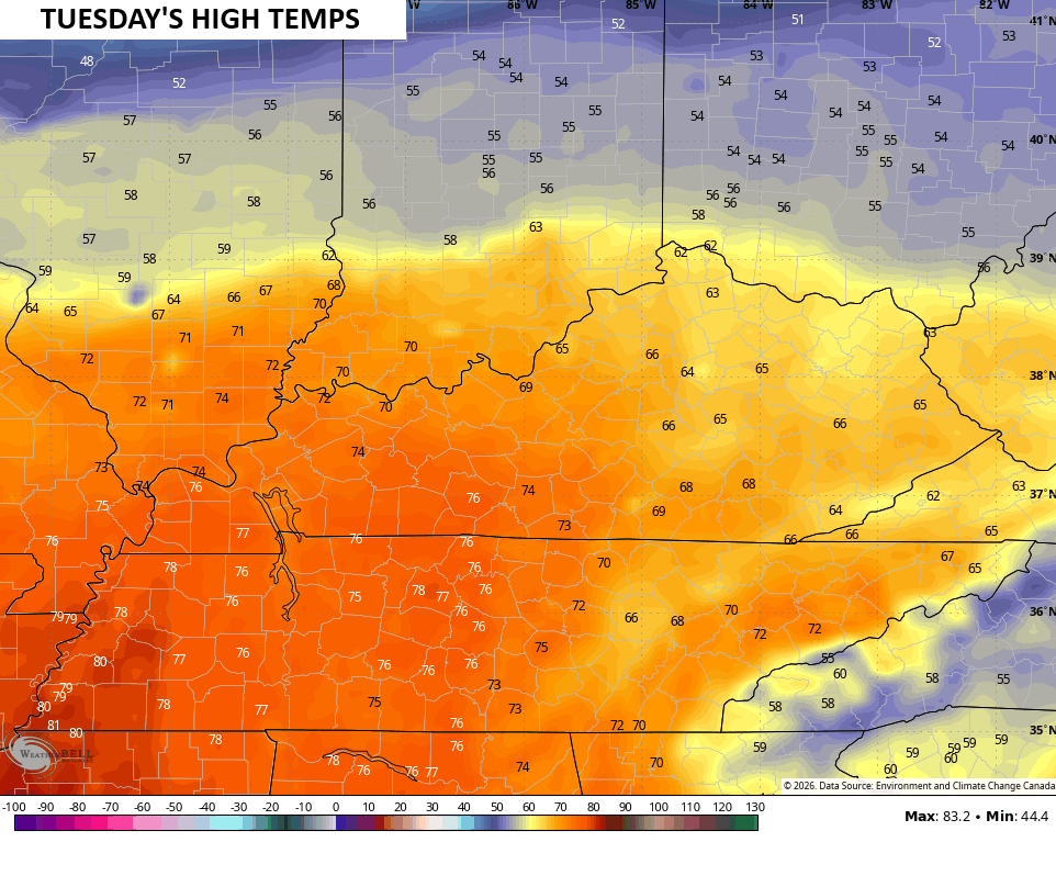 Whatever winter weather is with us early Monday should melt away pretty quickly during the afternoon with temps well above freezing. From there it’s full steam ahead to spring temps arriving on Tuesday. Temps surge into the 60s and 70s for highs…