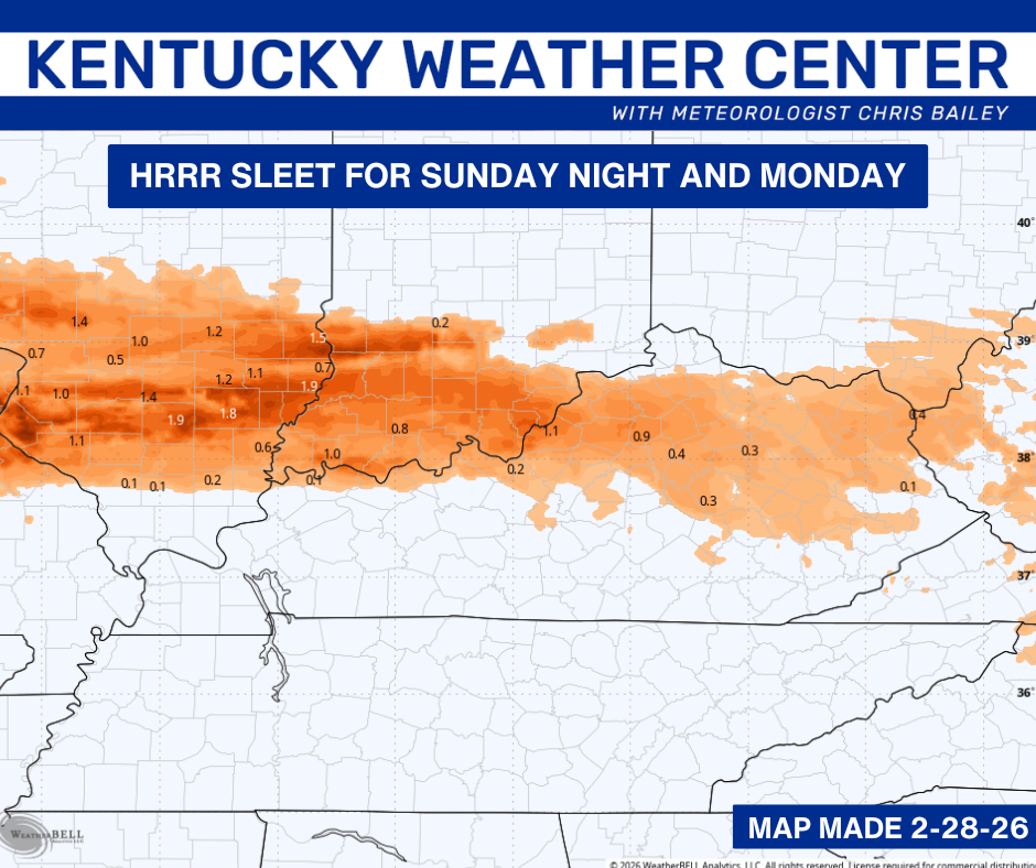 A cold front drops in here early today and slows down. Colder winds are showing up as morning showers taper off. A wave of low pressure then rolls eastward into the region tonight, bringing snow, sleet, freezin rain and rain across Kentucky.