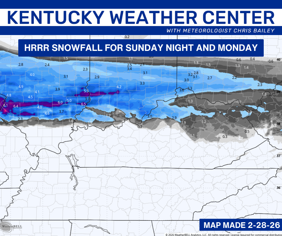 The HRRR Model is really amped up with this and shows enough wintry accumulations to cause travel issues Monday morning…