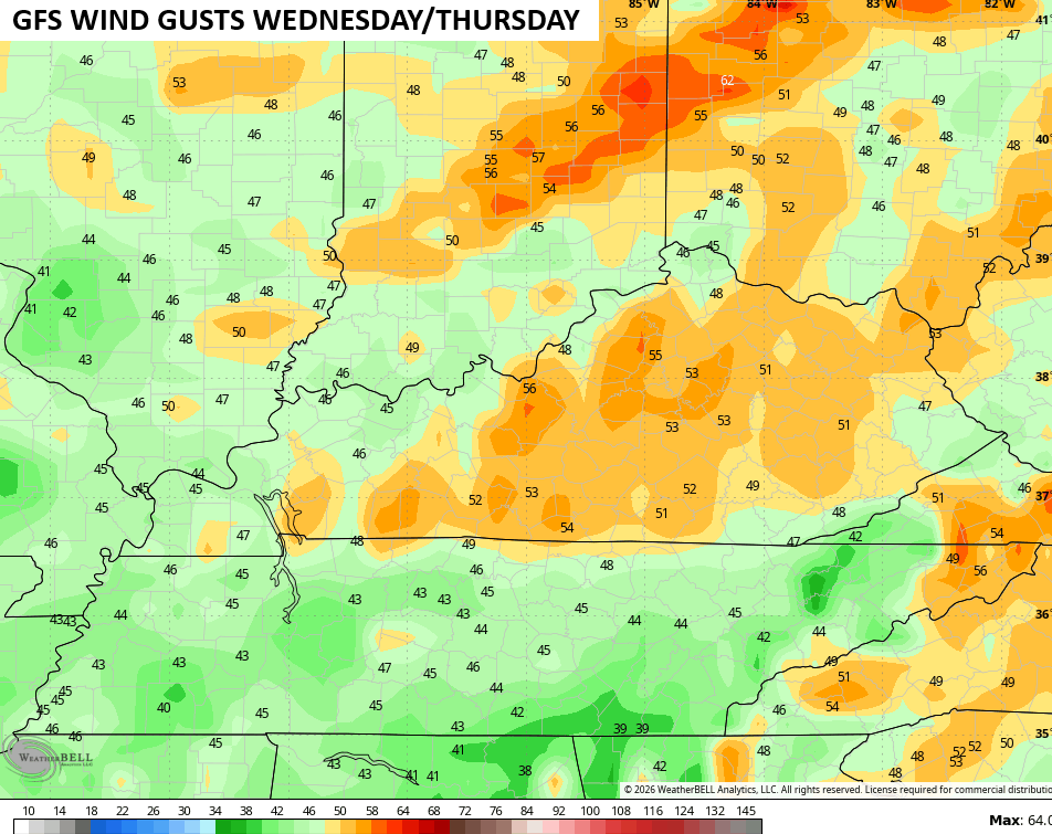 Behind the front comes a dramatic drop in temps with readings going below freezing by Thursday morning. A few flurries or even some snow showers may be noted across central and eastern Kentucky early in the day.