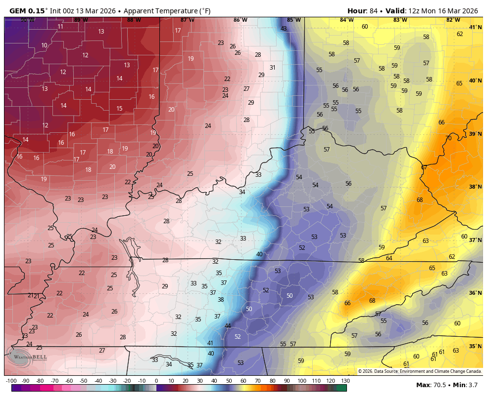 Winds on Sunday crank ahead of a major storm system developing in the Plains. Temps will surge into the 70s around here with dry skies taking us until late in the evening as that low finally spins toward the northern Ohio Valley. This will have a blizzard along and north of the track of the low.