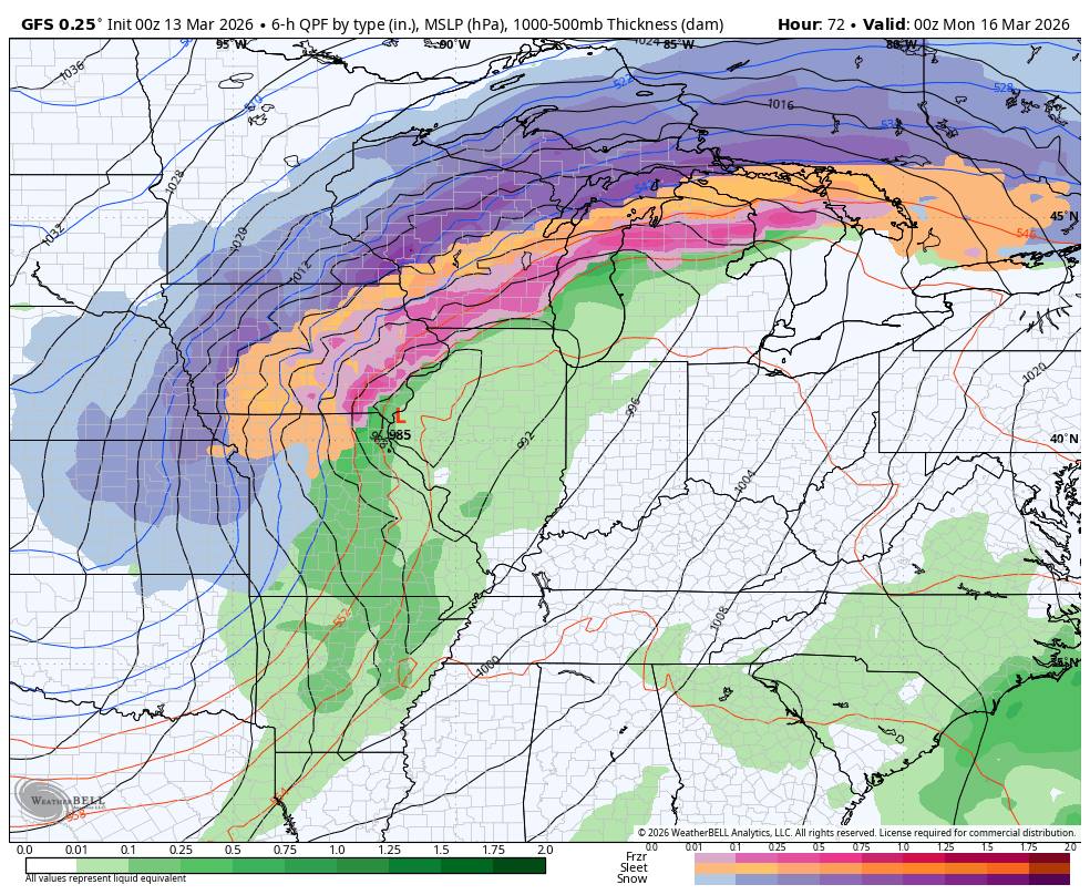 The forecast models are in good agreement on the evolution of this big system. Here’s the GFS…