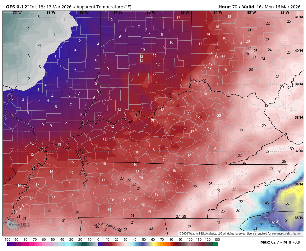 Temps hit the 70s on Sunday then drop below freezing right behind this front Sunday night. Wind chills reach the teens Monday morning. This animation shows the wind chills from late Sunday evening through Noon Monday…