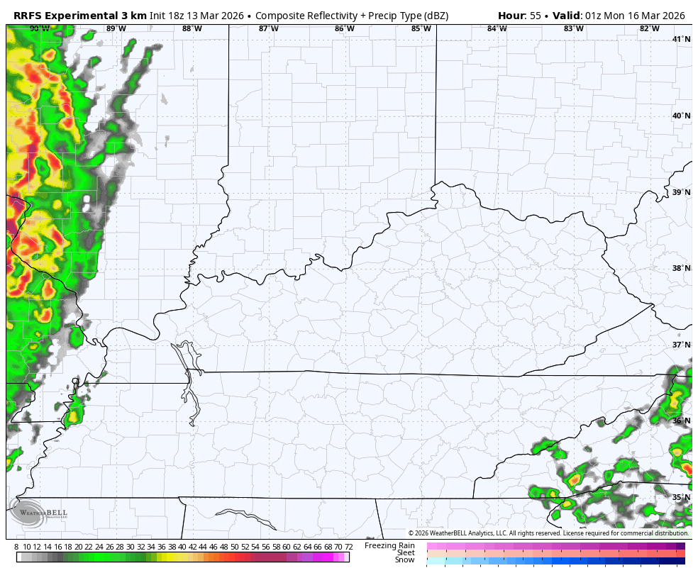 The future radar from the RRFS shows this line of severe storms with the snows coming in directly behind it…