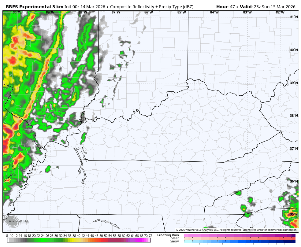 The future radar from the RRFS shows the squall line well but is likely lacking a bit with the snow showers coming behind it…