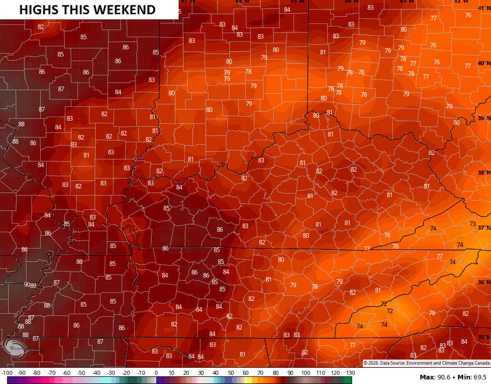 That’s ahead of a milder flow that boosts temps toward the 80s this weekend…