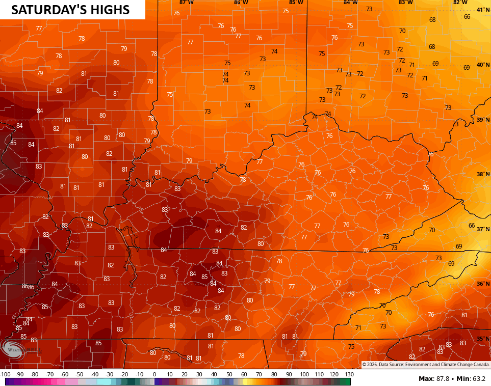 Those head deeper into the 70s for Saturday with an 80 in the west…