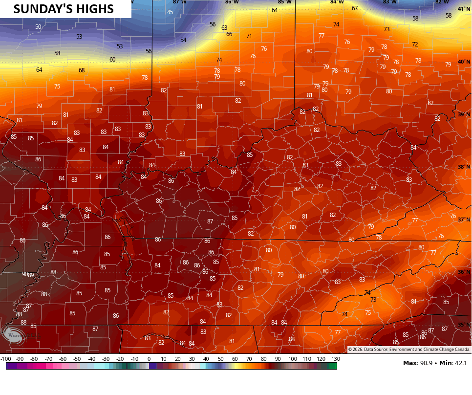 Record highs may show up in the west Saturday and across the entire state Sunday. That’s when temps jump deep into the 80s…