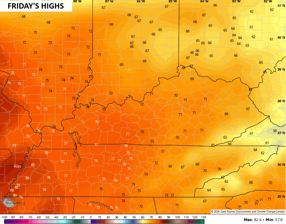 Those 70s engulf the entire state on Friday…