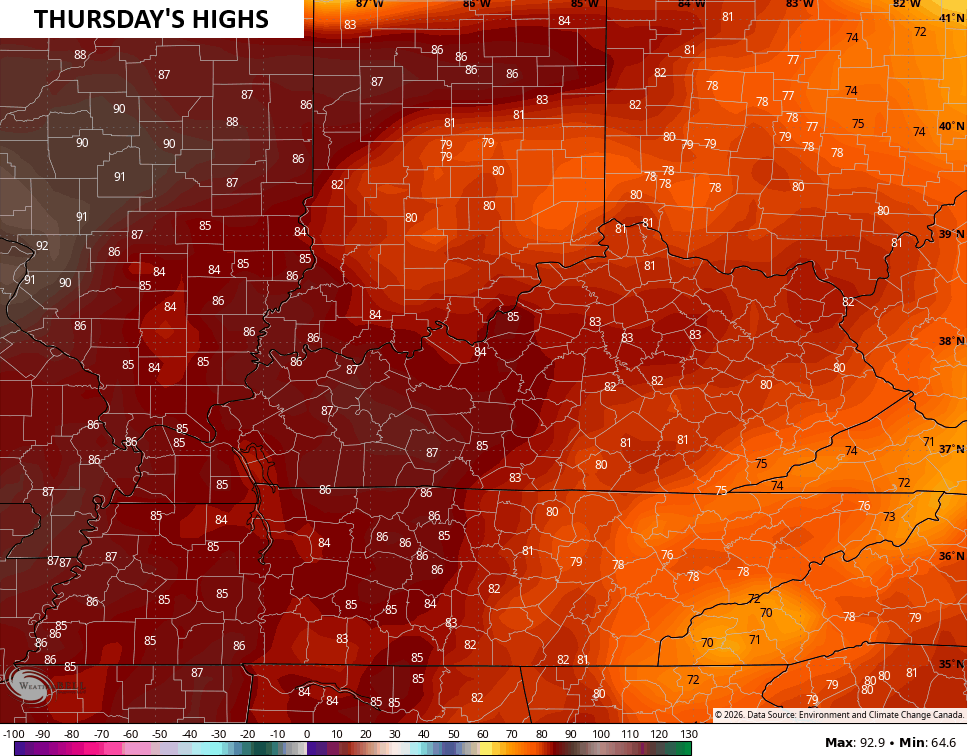 Say hello to another round of record or near record highs for Thursday…