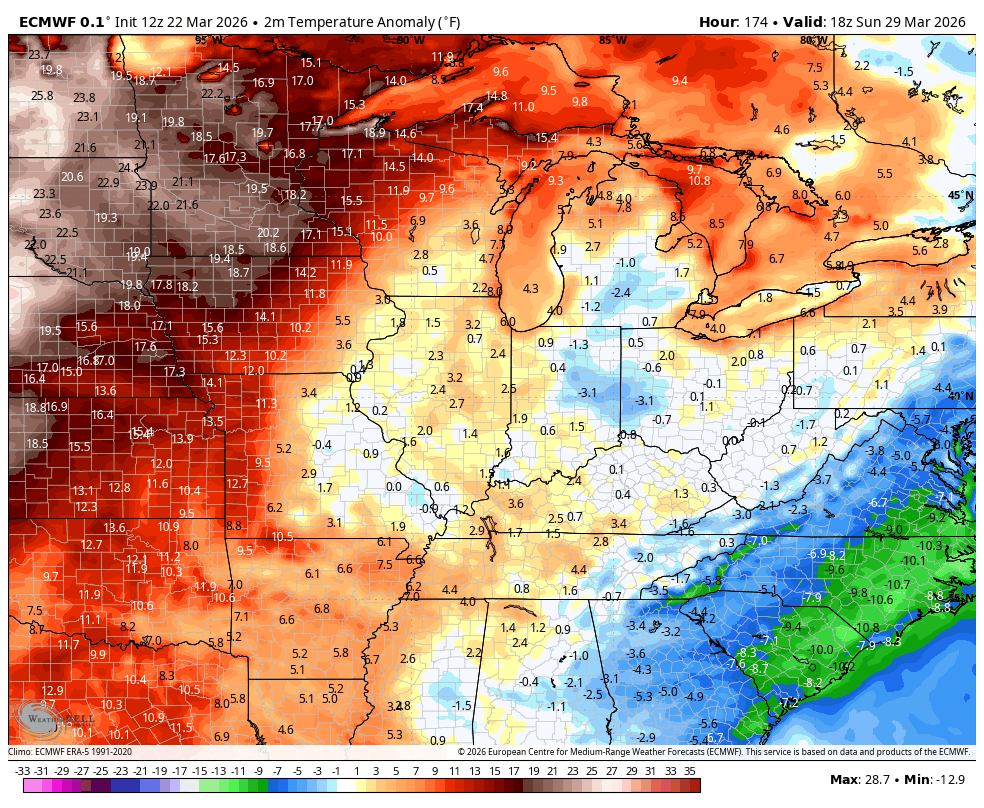 This pattern then goes back warm with back and forth shots leading to rounds of storms zipping through into early April…