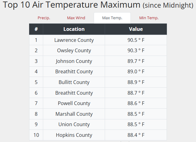 Even the Kentucky Mesonet sites hit 90…