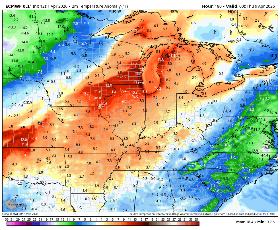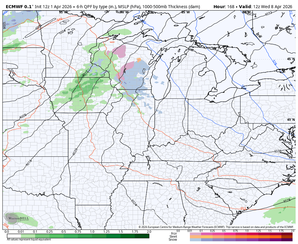 This action looks to move through fairly quickly, leaving us with increasing amounts of sun for Easter. Here’s the EURO showing it all…