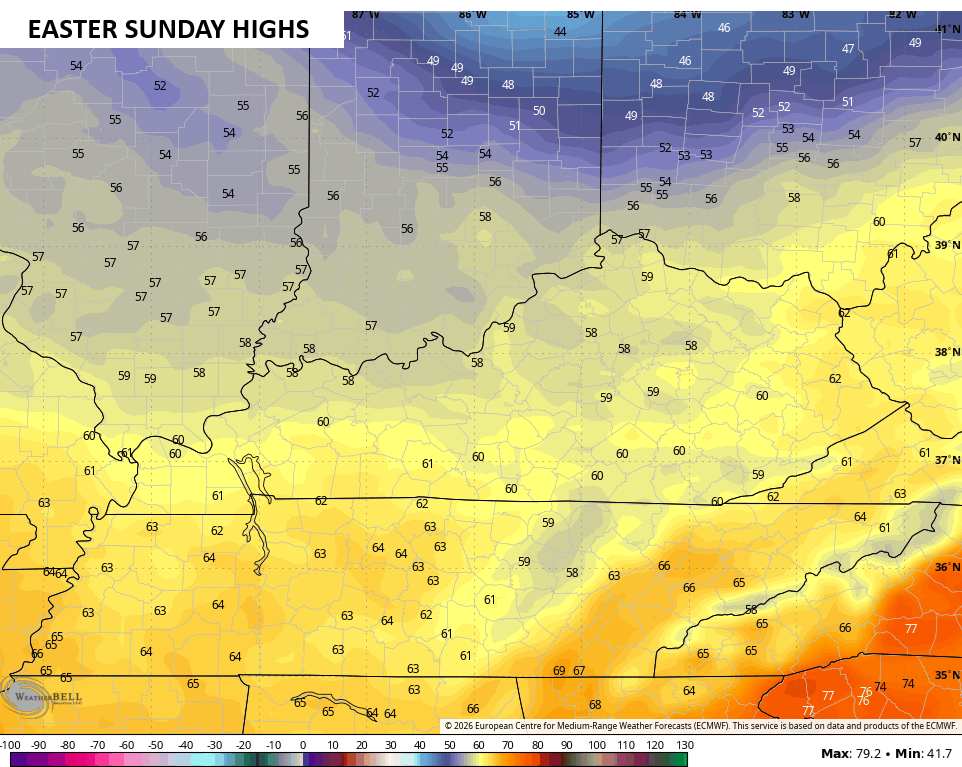 Easter Sunday looks much better with sunshine taking control with much cooler temps. Highs range from 55-60 for many…