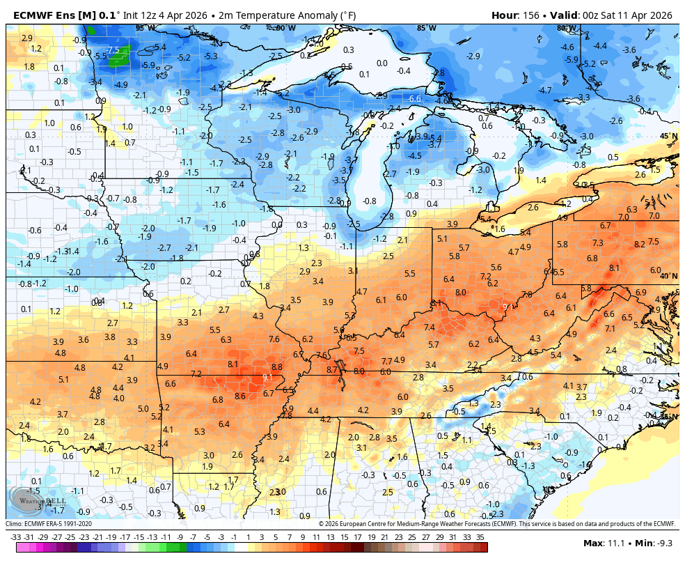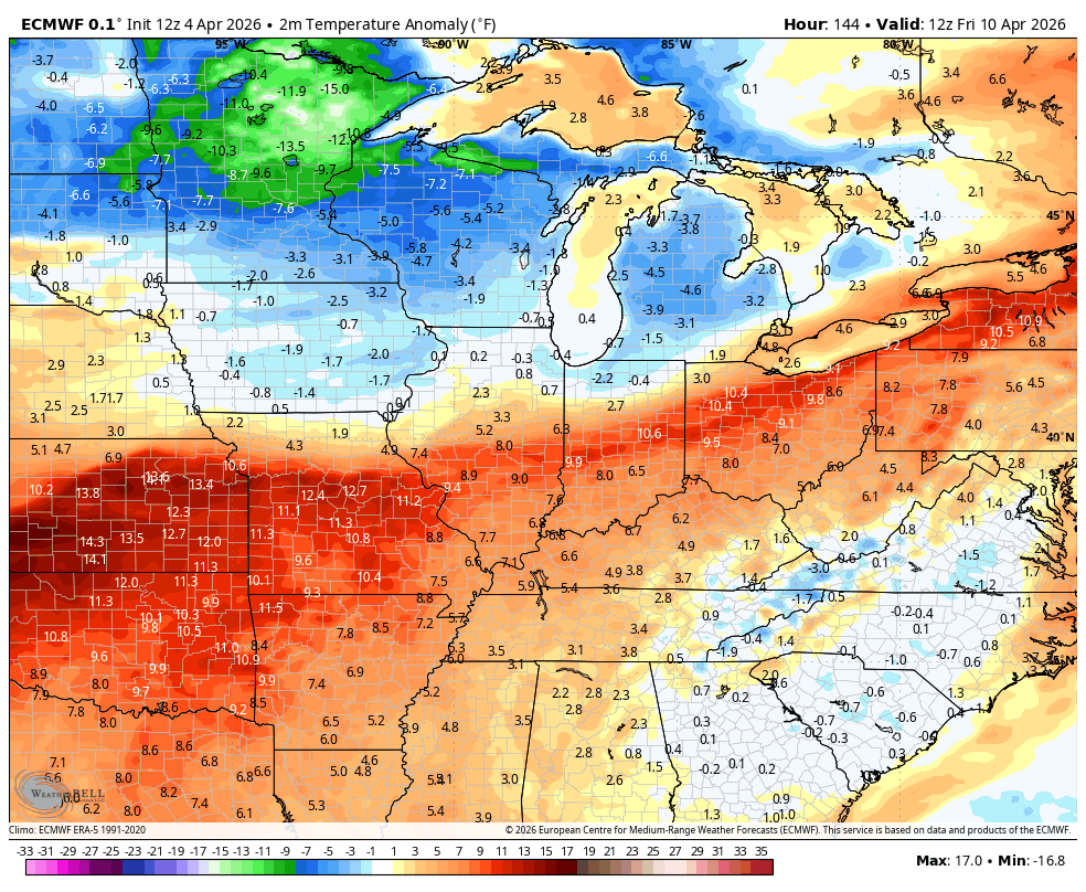 The pattern is likely to flirt with additional record highs that would give way to a mid-April frost threat and the temp anomalies from the EURO show the potential…