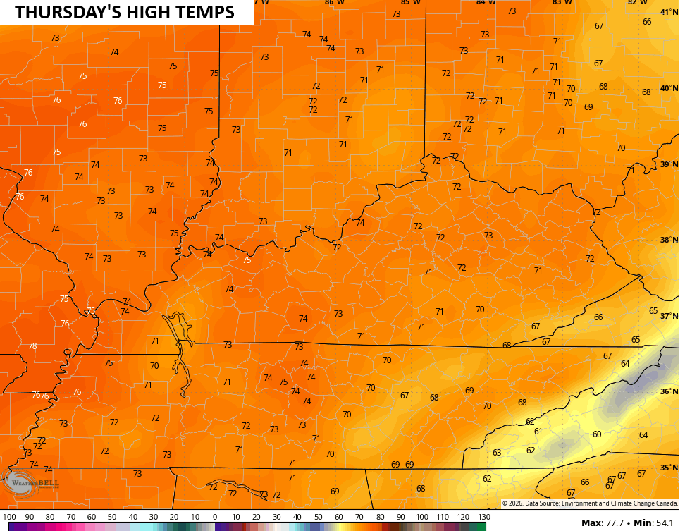 Thursday’s numbers jump deep into the 70s…