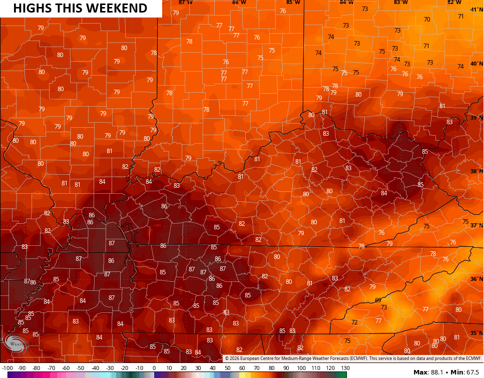 Temps by late this weekend surge into the 80s…