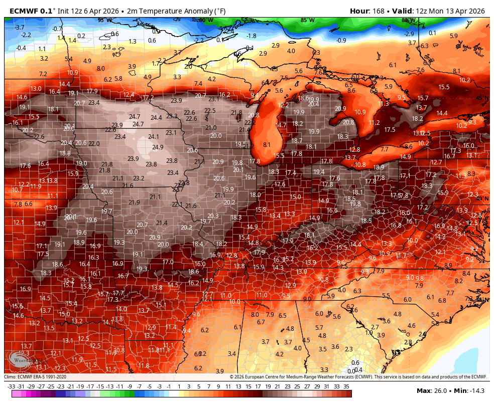 The pattern is skewed VERY warm, but the EURO does see a shot of colder air in there…