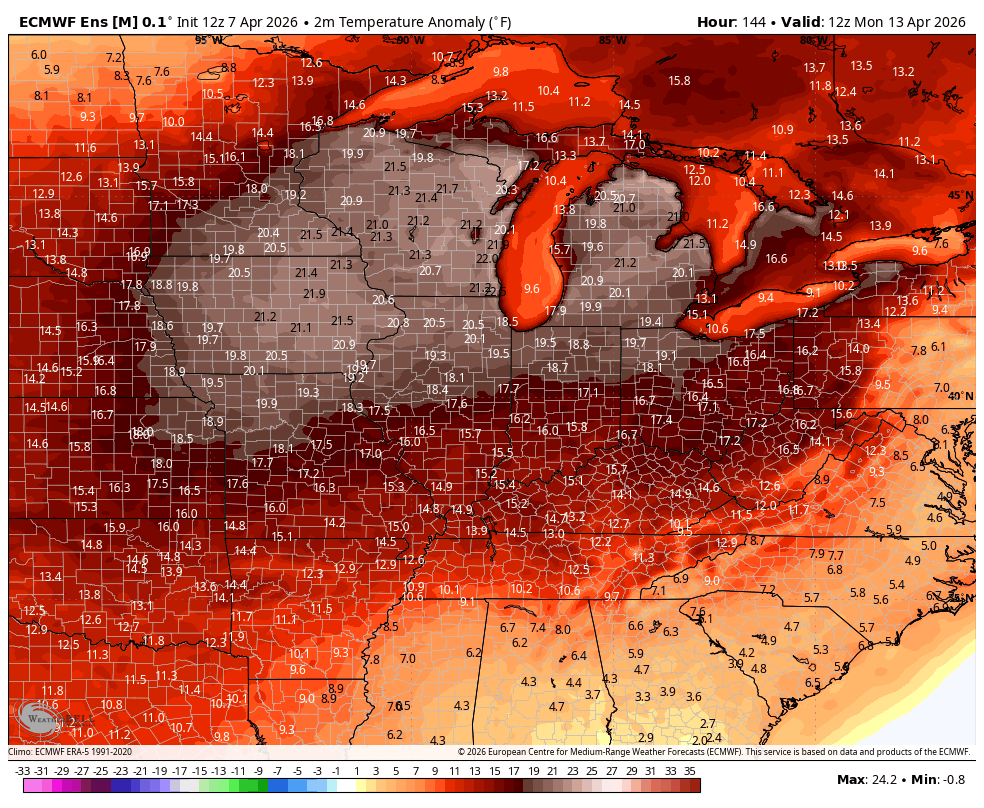 The EURO Ensembles agree with what the operational Euro is cooking up for temps…