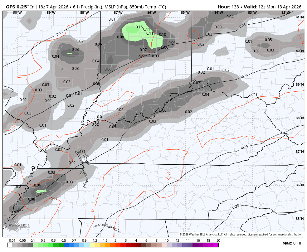 The GFS has a better shot of some storms rumbling through here…