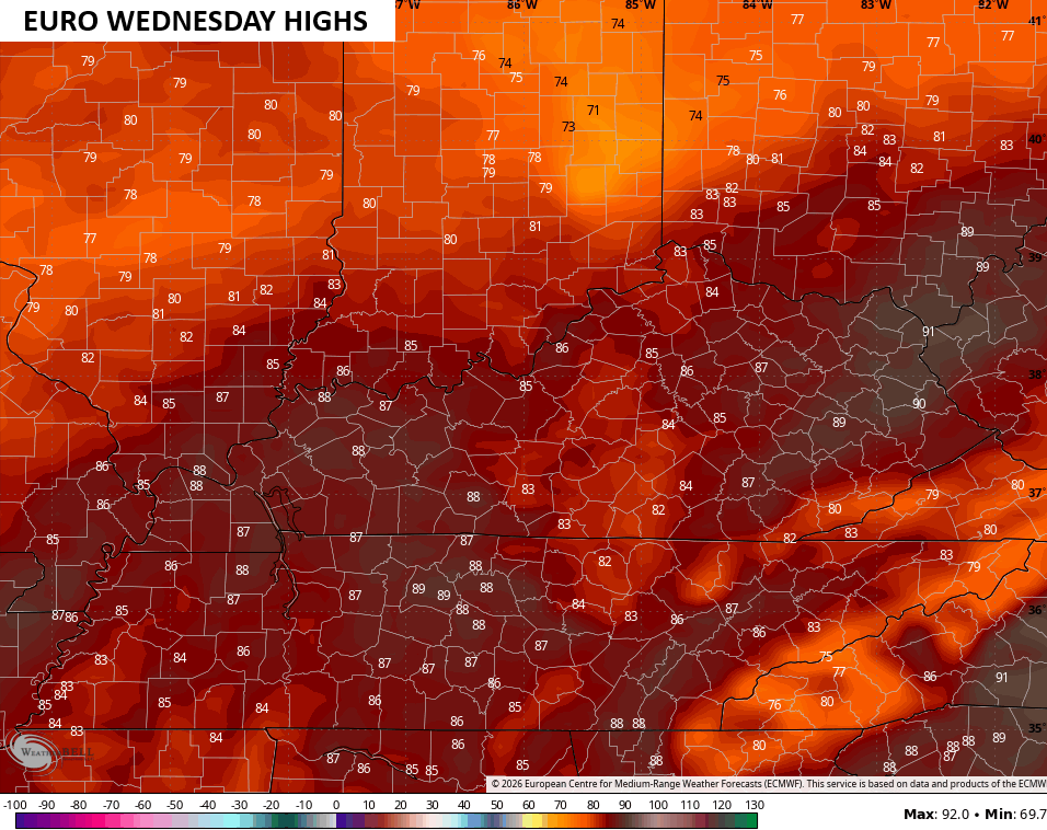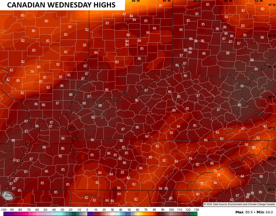 The real toast may come on Wednesday with many areas likely topping out 85-90 degrees. That’s something the Canadian and Euro both agree on…