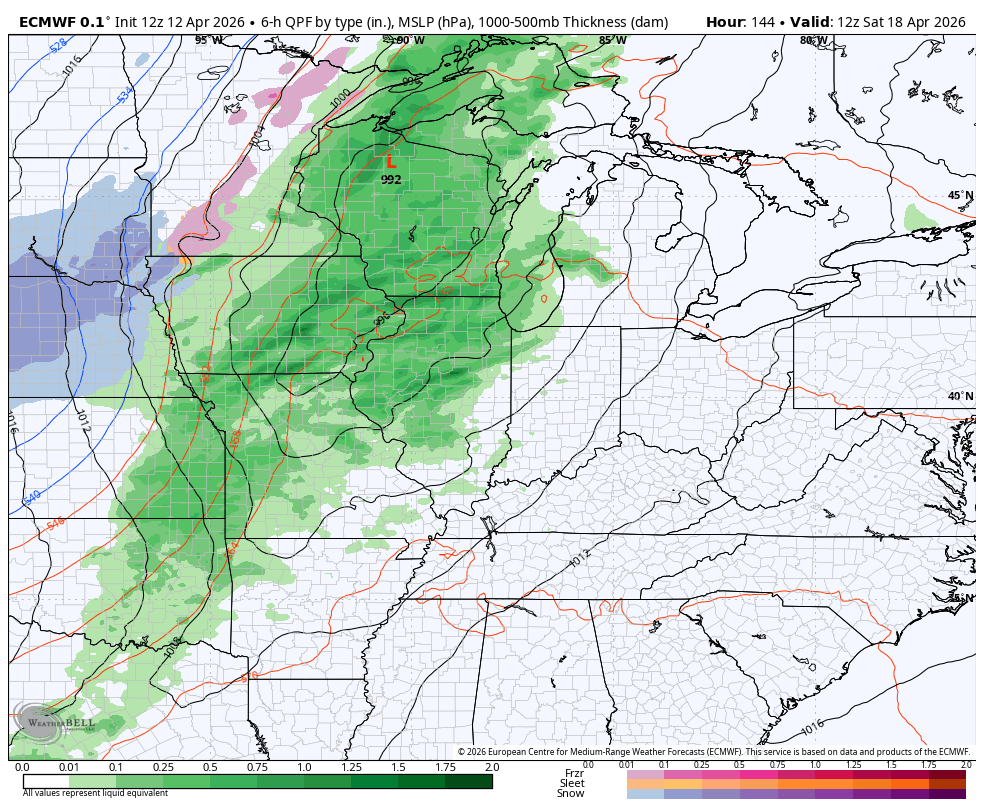 That’s ahead of a potent cold front that will bring showers and some storms ahead of it and a MAJOR temp drop behind it…
