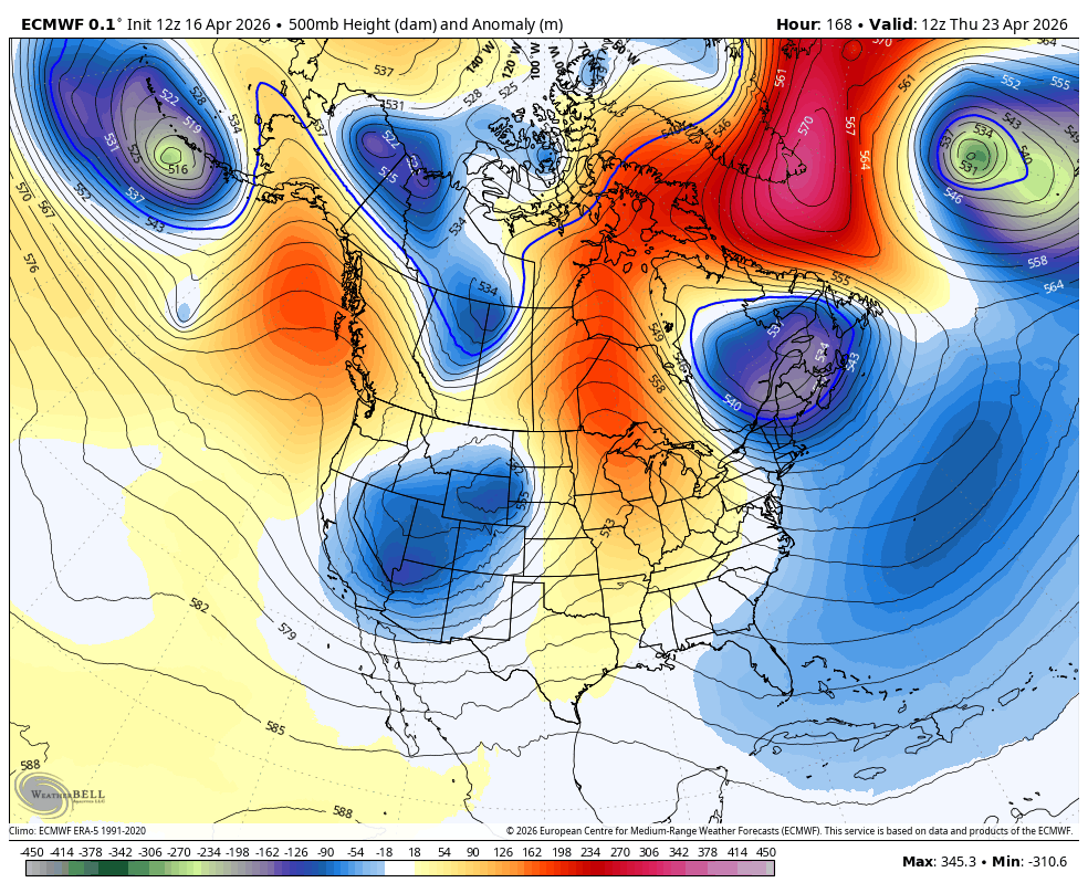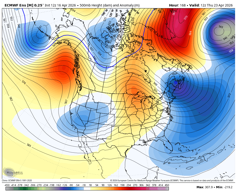 Temps rebound into the 70s very quickly by Tuesday then make a run toward 80 later next week. That’s ahead of a blocky looking pattern setting up for the closing days of April into early May. This setup leads to the potential for big dips in the jet stream across our region. The EURO shows this well…