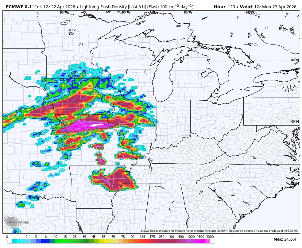 Check out the amount of lightning the Euro is spitting out with this system…