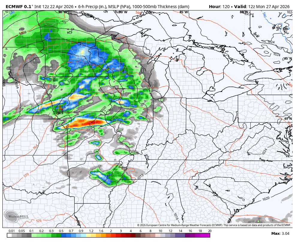 Temps come way down behind this system and look to REALLY come down behind the next system that may have a big impact on Kentucky Derby Weekend. The EURO has another potent system that as some serious chill behind it…