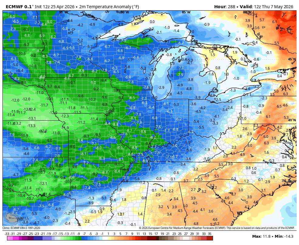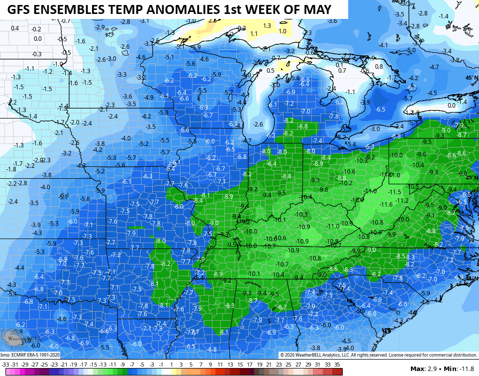 The GFS Ensembles for the first 7 days of May are super chilly with temps averaging well below normal for the 7 day span…