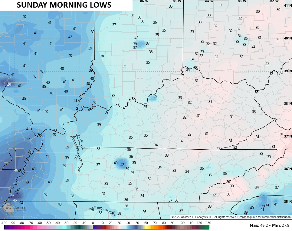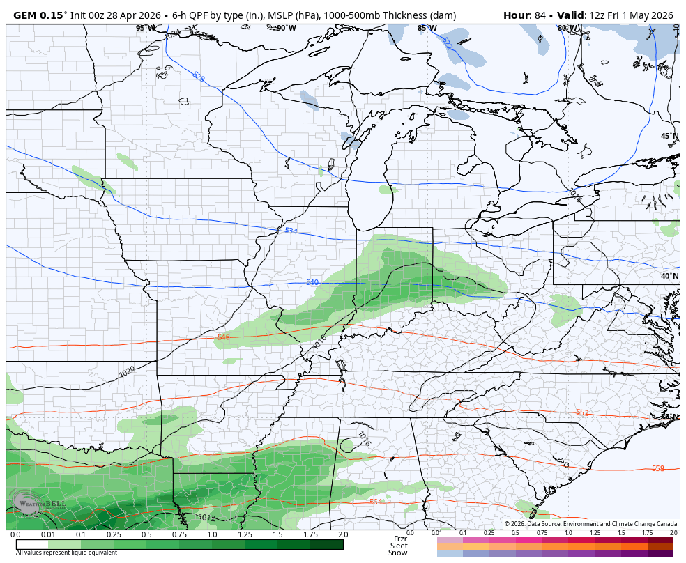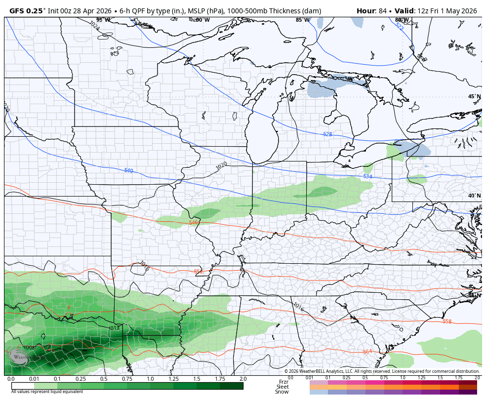 I’m still worried about showers if not a band of out and out rains impacting the state later Friday into part of Derby Day. The forecast models are showing this opportunity as our southern low creeps a bit farther north compared to earlier runs of the GFS…