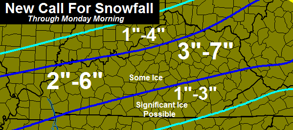Nearly impossible to tell where the Freezing line will set up..Of course the more North you live the better chances of snow..My guess and only a guess is North central and North Eastern parts get the heavy stuff..You may live in an area that get’s 4 inches and drive 10 miles and see a foot..A 50 mile shift North or south in modeling would make a huge difference..Of course us snow starved folks in Southeastern Ky can only watch and wonder what we have done to see such misery..