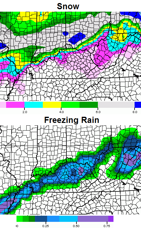 LMK not too impressed with the icing potential for most of Kentucky in the afternoon forecast discussion. Says perhaps 1/4 inch in the Indiana counties and maybe some potential in counties along the Ohio River. Looks they are thinking rain for most of Central Kentucky.