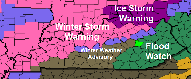 I have a question for any of you very knowledgable weather peeps out there.. I’m in between morehead and ashland and we’re under a flood watch; however, our temp has been holding steady at 30 degrees all morning. Should we be worried about ice? One county north of us is under an Ice storm warning.