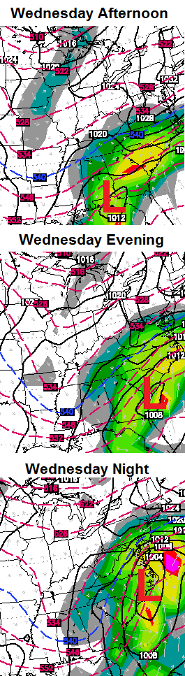 I keep watching the Wednesday-Thursday storm system that is just beginning to come into decent range on the models. This storm develops across the deep south and then rides up the east coast. Will it be just off the coast or inland as it does so? That’s what we will have to figure out over the next few days. The European Model continues to show this coming far enough west to bring some snow our way…
