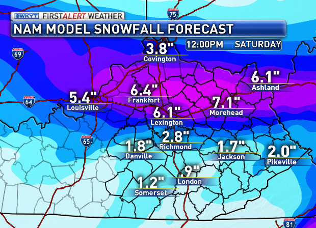 I was expecting the Madison County cut off. If the pattern holds – Lexington, Fankfort, Harrodsburg, Lawrenceburg will get 5 to 8 inches and Richmond / Madison County will get perhaps 2.