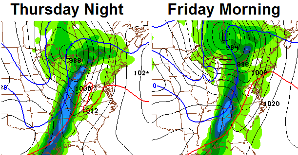 That brings us to Thursday and what is likely to be the warmest day in a while. Readings should surge toward 60 or better on a gusty southwesterly wind. All of this is ahead of a strong cold front that swings in here Thursday night with a line of showers and thunderstorms. Some of these storms may be strong and that is certainly something for us to watch for. Check out the possible transition from strong storms to flakes in a matter of hours…