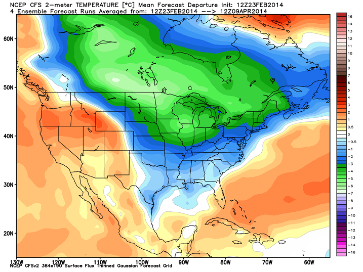 If you want a depressing look of the pattern ahead, take a look at the CFS temperature anomaly forecast for the next 45 days…